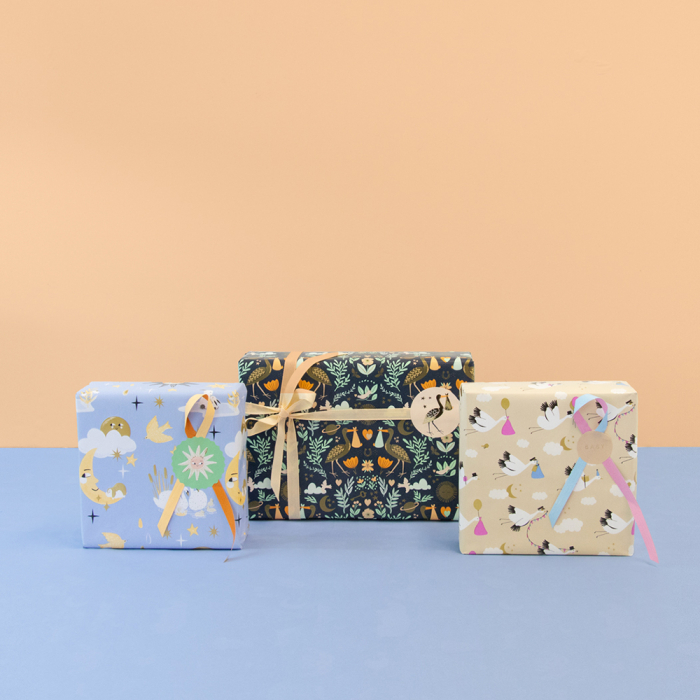 Fügen Sie Ihren Geschenkverpackungen eine romantische Note hinzu mit unserer 150 Meter langen Thekenrolle Geschenkpapier von House of Products. Dieses wunderschön gestaltete Geburtsgeschenkpapier enthält Details wie Herzen, Störche, Mondsicheln und Sonnen, alle auf einem dunkelblauen Hintergrund mit goldenen Akzenten. Die nude-farbene Rückseite bietet zusätzliche Vielseitigkeit. Perfekt für Einzelhändler, die ihren Kunden etwas Besonderes bieten möchten. House of Products ist ein nachhaltiges und FSC®-zertifiziertes Unternehmen, das hochwertige Verpackungsmaterialien liefert.